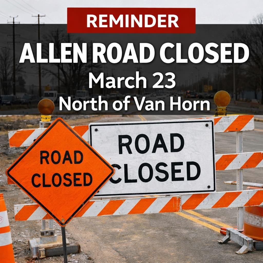Northbound: From Allen Road, turn west on Van Horn Road, then north onto Ford Lane, and east to West Road.  Southbound: From Allen Road, turn west onto West Road, then south onto Ford Lane, and east to Van Horn Road.